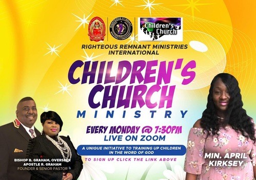Join Righteous Remnant Ministries International is pleased to announce the appointment of Minister April Kirksey as our Global Children’s Ministry Leader and the official Ministry representative beginning 14 August 2023 @ 7:00pm live on Zoom!